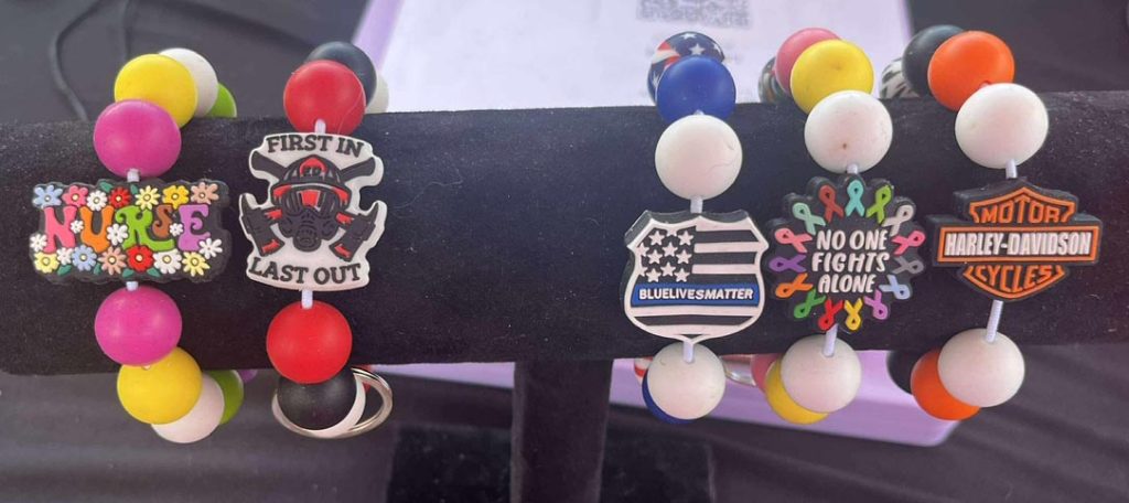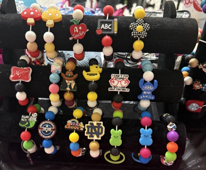 Lacey makes and sell beaded items from keychains to pens. If she can find a way to put beads on it, she has! She also makes 3d printed keychains, all of which can be personalized to what you would like.